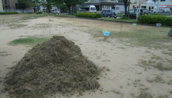 ◆公園の一部芝生化による手抜き除草作業後